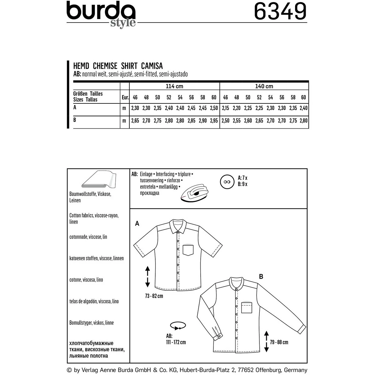 Burda 6349 – Men’s Shirt with Collar Sewing Pattern