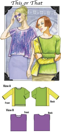 Cutting Line Designs #12203 The Director’s Cut – Blouse Sewing Pattern. Two tops with multi level hems, extended shoulders, back yoke, and full length sleeves. ย View A has the bulk free collar, front chest shield, front buttonhole tab which extends into the sewn on front facing, turn back cuffs, and machine stitched hem. ย View B is made from 4 companion fabrics, is longer in the length, has long sleeves with separate turn back cuffs.