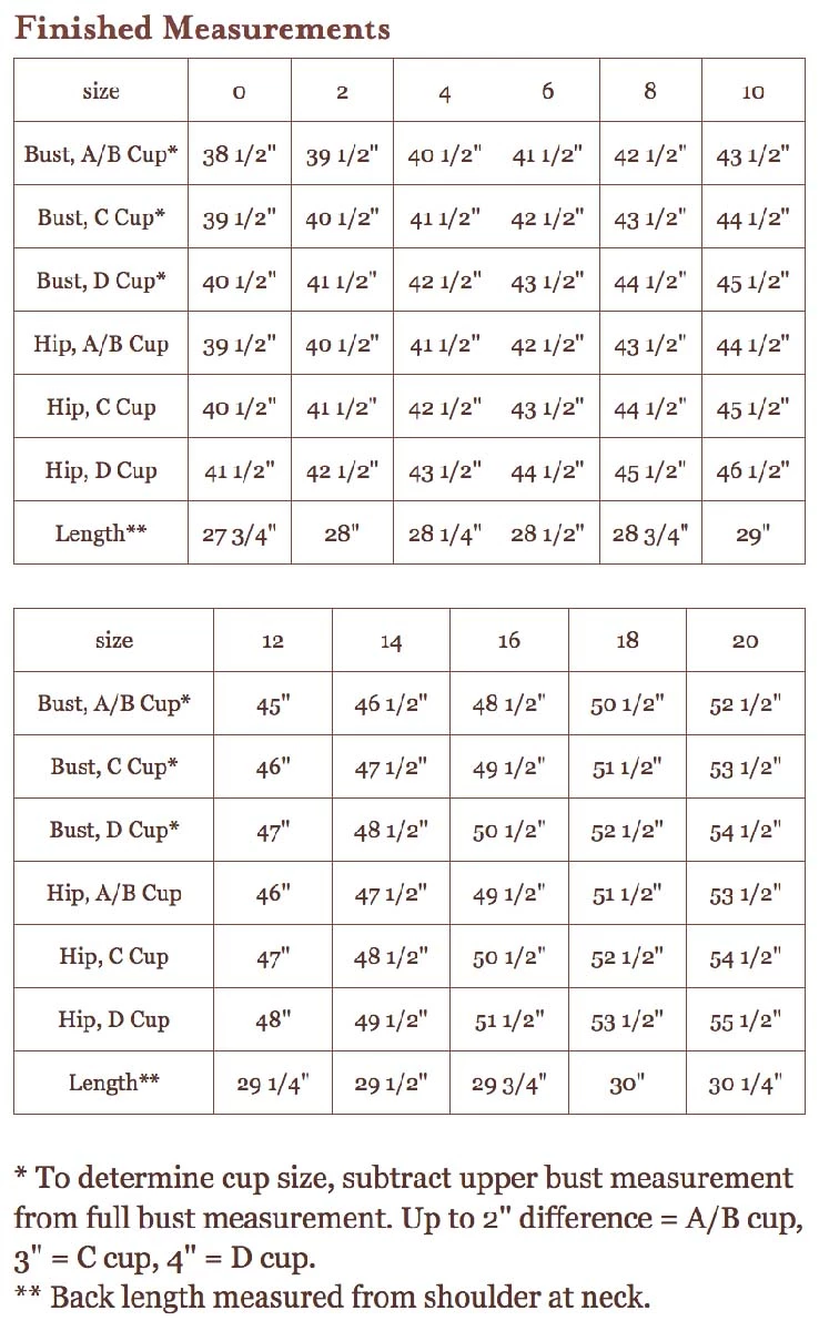 The pattern features separate pieces for A/B, C, and D cup sizes