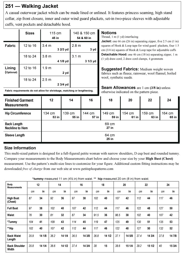 Petite Plus #251 Walking Jacket Sewing Pattern